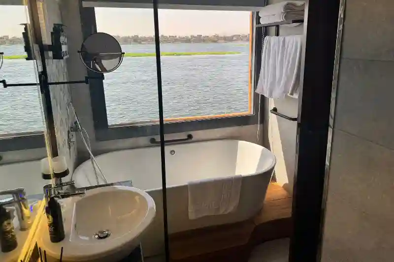 Dopo questa prima immersione nella storia, salirai a bordo della Dahabeya Iris, la tua crociera sul Nilo 5 stelle lusso, che ti offrirà un’esperienza unica di lusso e serenità lungo il Nilo. Una volta a bordo, l’equipaggio ti accoglierà con un sorriso, facendoti sentire subito a casa. Dopo esserti sistemato nella cabina, potrai gustare un pranzo delizioso mentre la Dahabeya inizia a solcare le acque del Nilo, diretta verso la splendida Isola El Hyrdiya.