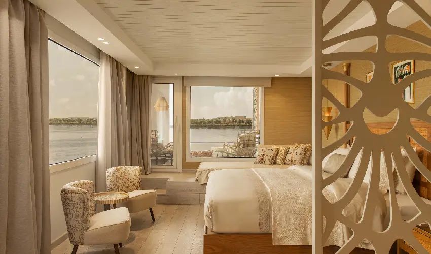 Dopo il check-in, potrai gustare un pranzo raffinato a bordo, immerso in un’atmosfera elegante e rilassante. Nel pomeriggio, inizierai la scoperta di Luxor con la visita al maestoso Tempio di Luxor.