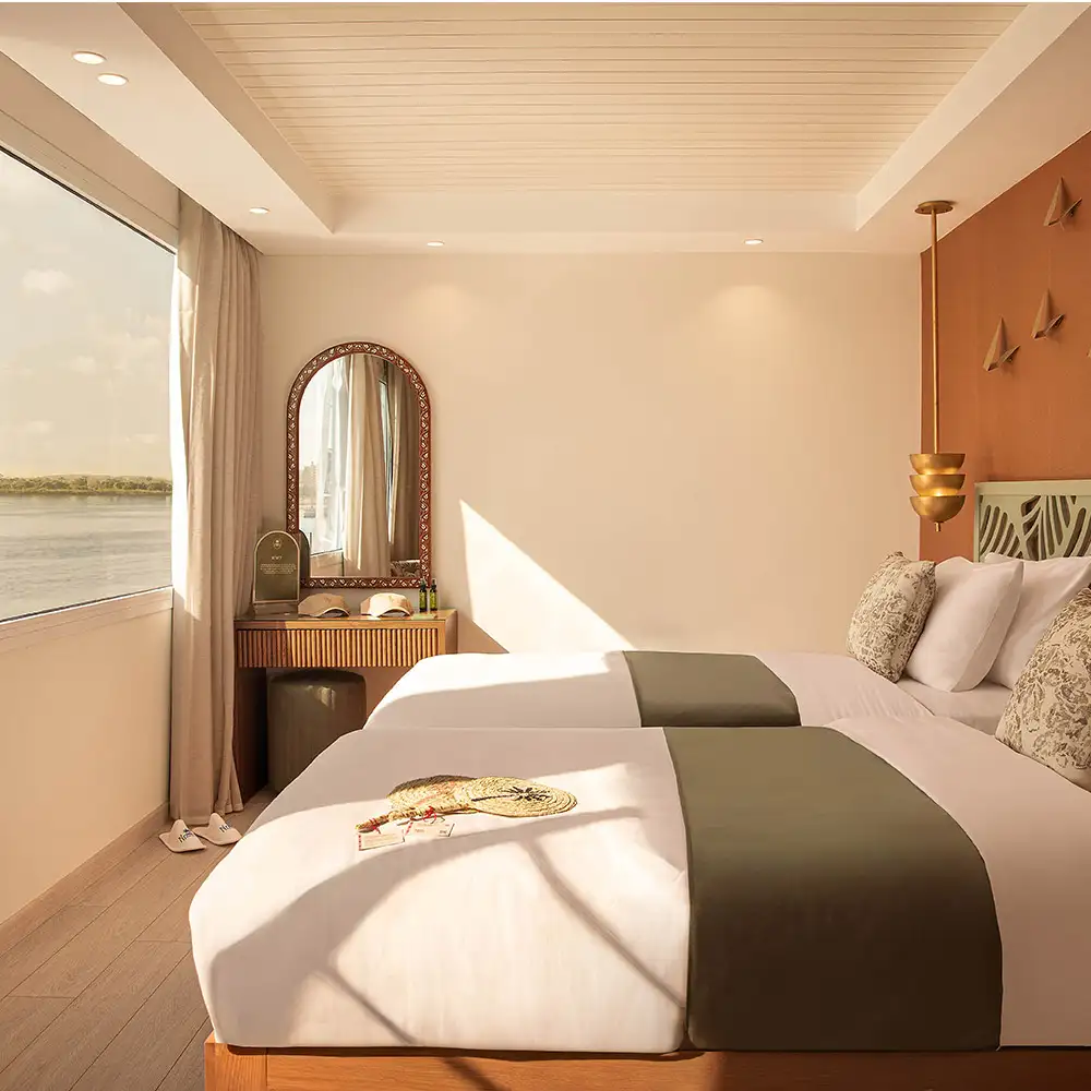 All’arrivo all’aeroporto di Luxor, il nostro staff ti accoglierà per il trasferimento a bordo della Dahabeya Nebu Ra, dove inizierà la tua crociera sul nilo esclusiva in dahabeya nebu ra.